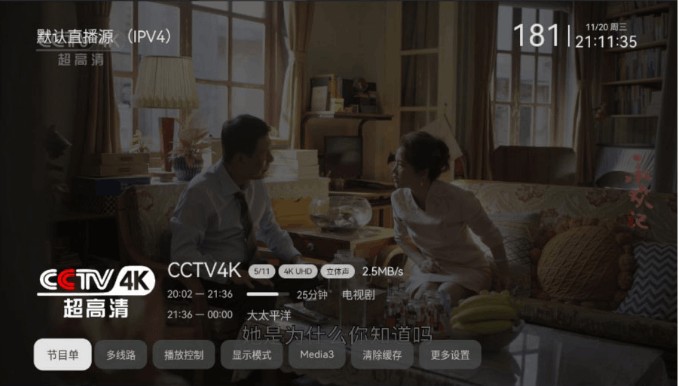 3、内置直播源和EPG预告,高清流畅播放不卡顿,支持开机自启、导入直播源、推送等功能。