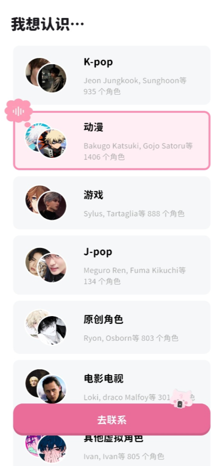 6、进去之后你就可以和喜欢的三次元明星和二次元角色开始聊天啦!