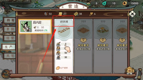 3、此时我们会发现可以建造胡饼摊,点击建造